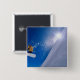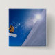 Man flying through the air on a snowboard with 15 cm square badge