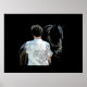 Man Holding Horse Dark, Poster. Digital Art. Image of the close relationship of a man and his horse on black background. Suitable for many different breeds of horse. Add your own text, thoughts, or favourite quote.