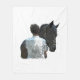 Man Holding Horse Light, Fleece Blanket. Digital Art. Beautiful portrayal of the love between a man and a horse. Design works well for any horse lover, equestrian, horsemen, equine aftercare, or equine-based business. Equally nice as a large-format art piece. Fully customisable. Pair it with the matching throw pillow.