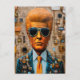 A man with an orange complexion and tie wears a suit covered in the decay of society AI generated art