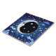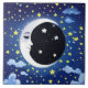 Tile in a playful, mystical, serene, man-in-the-moon, glowing against a background of stars and nocturnal clouds