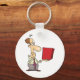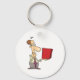 A man looking curious at a red box. This design looks really effective on these Keychain