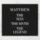 A classic black background. Text: The Man, The Myth, The Legend. Personalise and add his name