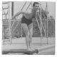 Man standing on diving board, preparing to dive (B&W) | George Marks | AssetID: 72131098