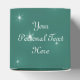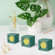 This party favour or gift box is deep emerald green with white glowing stars and a man climbing a ladder to a yellow moon with a face who is winking with the text Reaching for the Moon. Customise your own text on the top flap with the template.