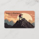 Muted colour graphic of a hiker standing on top of a mountain. All text is easily customisable.