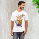 A cartoon style man standing playing the Accordion. This design looks really effective on this Mens T-Shirt