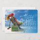 Man relaxing on the beach in santa's hat holiday card