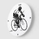 This great Custom Clock is made in the USA of thin acrylic plastic. You can add your own image or change the design. If you see another one of my designs on any other product that you would like on this item - e-mail me and I will make it for you. This image of this Man Riding a Bicycle would be perfect on your wall if this is a sport that you like. This would be a great gift also. Enjoy!