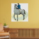 A man in riding gear riding a horse. This design looks really effective on these Poster