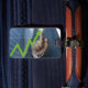 Man showing stock price touchscreen concept luggage tag