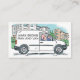 Man & Van Business with Name on a Company Van. Colour illustration of a driver at the wheel of a white van. Illustration appears on both sides of the business card. Man & Van calling-card.