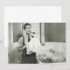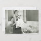 Man doing washing dishes in kitchen, pipe in teeth, (B&W) | George Marks | AssetID: 57539450