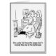 A man is watching television. His wife says to a friend it's a pity his favorite soaps don't include the one in the bathroom. Funny Cartoon. Personalize with your choice of inside message. Man watching television soaps.