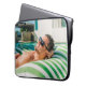 This laptop sleeve looks exactly as it does in picture. I actually thought is was too small until I put my laptop in it. It's a bit snug, but it fits. Figure it will stretch a bit, hopefully seams hold. Them seem good for now. I didn't have any personalization done, looks great as is.