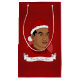 Gift bag with illustration of a African American or Hispanic man with short black hair and red Santa Claus hat; in red circle on a red background, with customisable text template for your name or message