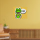 This cheerful computer-generated digital art graphic shows a man with a smiling frog head saying hi. The art is in cartoon sticker style and is on bright yellow. This funny, happy frog man was created using an image generation of the AI source DALL-E, and is sure to be fun for fans of technology, new art, and frogs!
