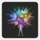 This colourful design shows a man standing with arms behind back with the exploding universe as his head.