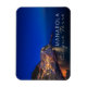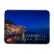 Rectangular photo magnet with the small town Manarola, 1 of the famous five Cinque Terre hill towns, built upon a cliff overlooking the Mediterranean Sea, with the lights on during Blue Hour in the beginning of the night in Liguria, Italy with the text 'Manarola, Cinque Terre'.