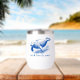 This serene wine tumbler features a gentle manatee gracefully swimming underwater, symbolising peace, tranquillity, and the beauty of marine life. The "Break from the Grind" slogan encourages viewers to find relaxation and connect with the natural world.