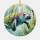 This customisable Christmas ornament features a watercolor portrait of a manatee floating through sea grass.