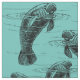 Manatee illustration pattern in black on teal. Beautiful vintage drawing of surfacing manatee in a pattern design.