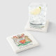 The coasters are gorgeous, a quality feel and heavy weight. They look like a precious archeological find. A rustic stone juxtaposed with a modern floral black and white print. I like the way the print goes slightly imperfect on the cut stone edges giving them a kind-of natural beauty.