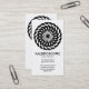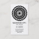 A stylish business card template with an attractive round geometric motif. Main company details on the front, with name and personal contact on the back.