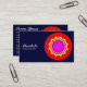 A business card with an attractive kaleidoscopic mandala motif. Business name etc on the front with other details on the reverse with the same motif and style.