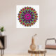 This Mandala Poster has a detailed 12 petal Design on a white background. The main colors in this Mandala are magenta, pink, violet, yellow - green, light green