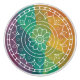 Modern ombre rainbow background, white mandala oriental flower, hippie chic, colourful low poly boho design.