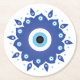 Mandala Greek Evil Eye Blue White Round Paper Coaster