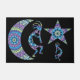 Mandala Moon Star Kokopelli Doormat. Southwestern star and moon. Kokopelli Rug Doormat Vivid blue colour combination that you can customise background colours to match your decor. Kokopelle Native American Indian cultures. Attributed to ancient aliens or tribal art and inspired by cave and rock drawings. Customise your Southwestern Style Native American door mat rug colours and styles. Great gift idea.