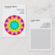 A business card template with an attractive Mandala motif on the front. Company name, business type and address on the front with name, job title, telephony, web and email addresses on the back, with a similar layout except there is a square pale grey area intended as a useful area for writing notes instead of the mandala motif. This card can also be further customised.