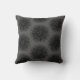 Throw Pillow with black mandala graphic illustration on dark grey background.