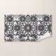Towel set in a twelve point mandala pattern in shades of graphite and silver grey, accented with black and white