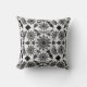 Twelve point mandala pattern throw pillow in classic black and white with shades of grey / grey, from light silver to deep graphite