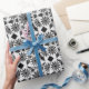 Twelve point mandala pattern wrapping paper in classic black and white with shades of grey / grey, from light silver to deep graphite