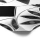 Print of a twelve point mandala pattern in shades of graphite and silver grey, accented with black and white