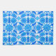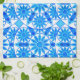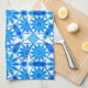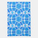 Kitchen towel in a twelve point mandala pattern in shades of cobalt and cerulean blue with turquoise and aqua, accented with white