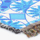 Throw in a twelve point mandala pattern in shades of cobalt and cerulean blue with turquoise and aqua, accented with white