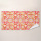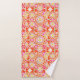 Towel set in a twelve point mandala pattern in coral red, shades of pink, and gold