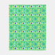 Fleece blanket in a twelve point mandala pattern in shades of deep emerald to pale mint green with peacock, turquoise blue, and white accents