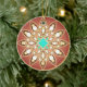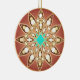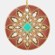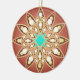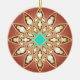 Twelve point mandala pattern in shades of tan, beige, caramel and chocolate brown, accented with turquoise