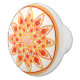 Twelve point mandala pattern in shades of coral pink, orange, mustard gold and white on a coral orange background