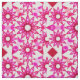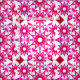 Twelve point mandala pattern in shades of pale to hot pink with a maroon / burgundy background