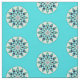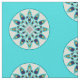 Twelve point mandala pattern in shades of turquoise, tan, navy, beige and grey on a turquoise background
