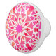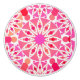 Twelve point mandala pattern in shades of fuchsia pink, peach and coral, outlined and accented with white