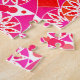 Puzzle in a twelve point mandala pattern in shades of fuchsia pink, peach and coral, outlined and accented with white