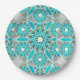 Mandala pattern, turquoise, silver grey and white paper plate